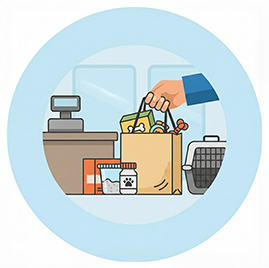 Gone for an extended period and need help restocking supplies? We offer trips to the store or vet to pick up pet food, litter, medications & more.